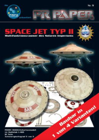 Basierend auf einer Risszeichnung von Rudolf Zengerle entstand ein Bausatz einer klassischen »Space Jet Typ II«. Robust und gebaut für die Ewigkeit darf man davon ausgehen, dass selbst im aktuellen PERRY RHODAN-Kosmos noch Jets dieses Typs für die unterschiedlichsten Zwecke im Einsatz sind, gerade im nicht-militärischen Sektor.