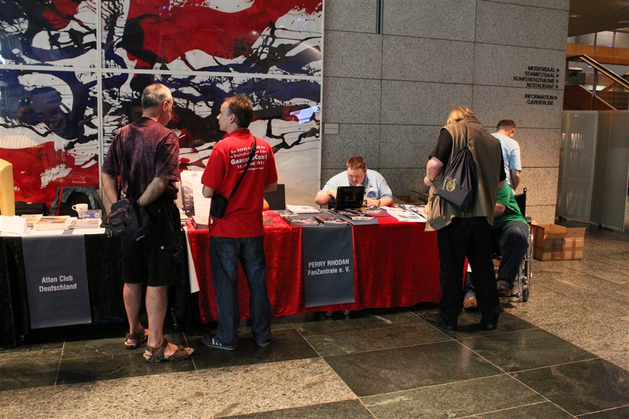Inzwischen ist der Perry Rhodan WeltCon 2011 vorbei. Wir waren auch da und es gab regen Andrang an unserem Stand. Und auch sonst gab es viel zu sehen und zu hören. Hier ein paar Impressionen von den drei Tagen im Rosengarten von Mannheim.